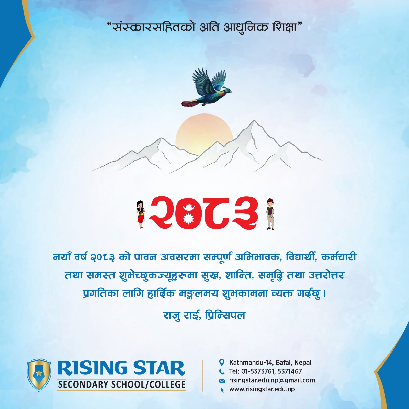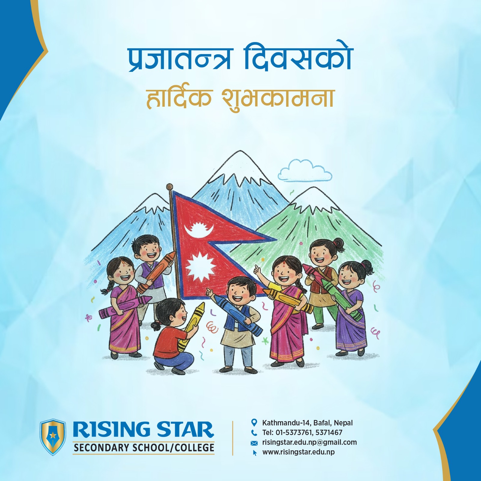 Located at the heart of Kathmandu, Rising Star School (2036 BS) has a rich history of academic excellence and a strong commitment to fostering holistic development of students. It has been offering a comprehensive and rigorous academic curriculum as well as conducive ambiance for learning and well-equipped infrastructure with sufficient playgrounds for the students. Beyond academics, we recognize the importance of extracurricular activities in shaping well-rounded individuals.